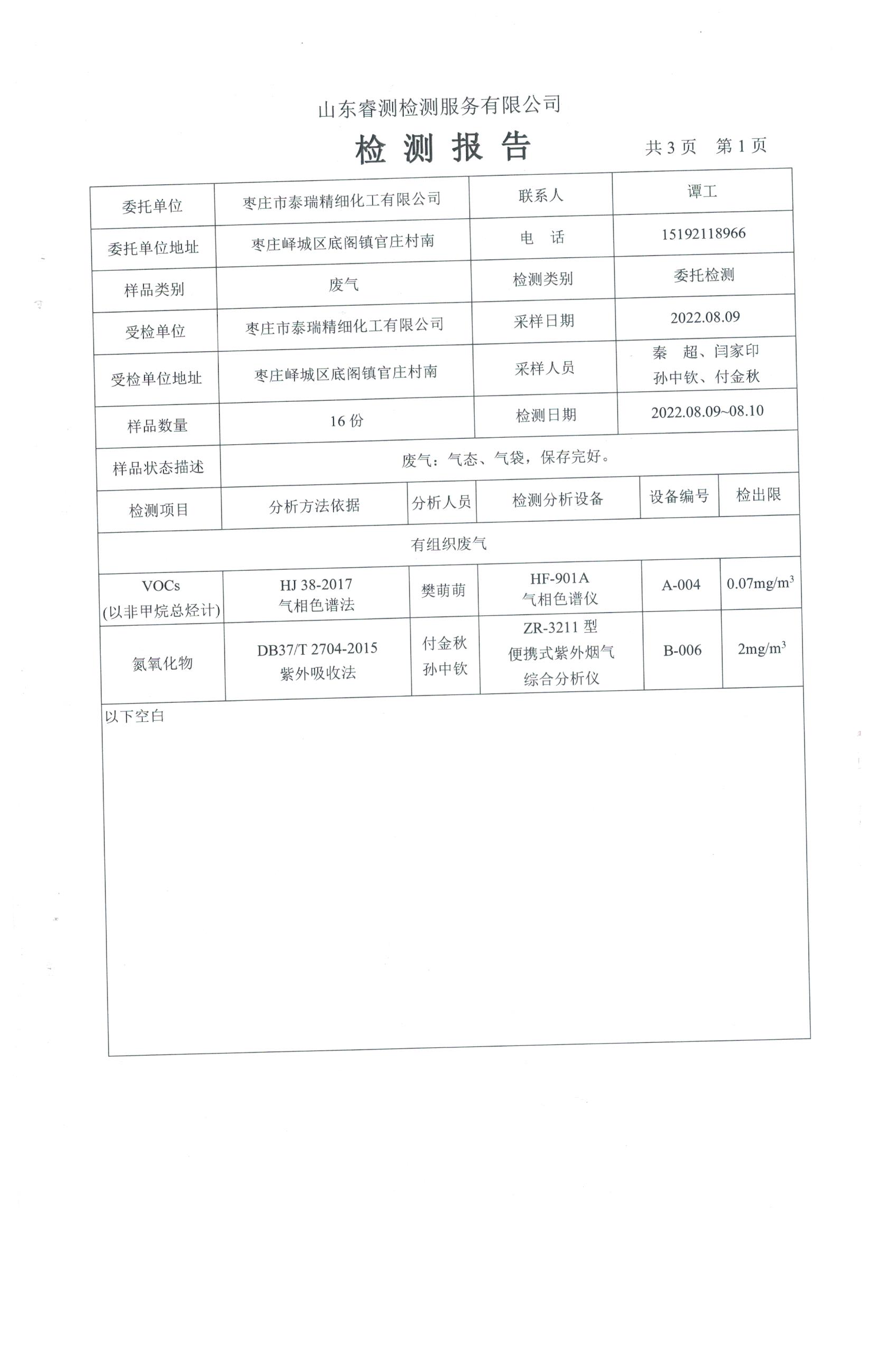 2022年8月份自行檢測(cè)報(bào)告