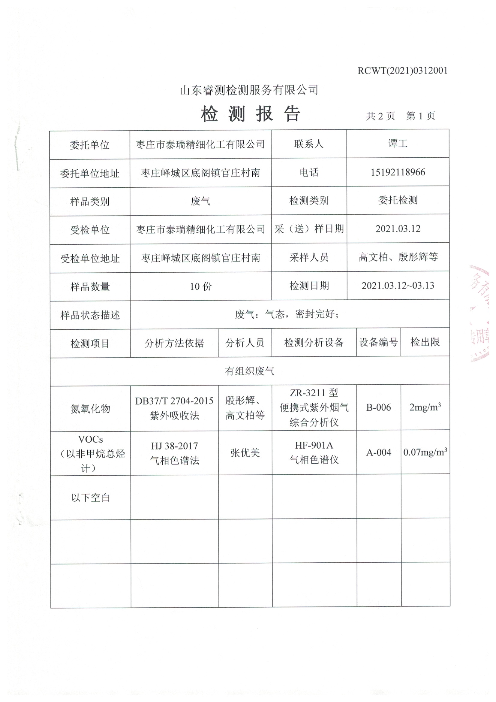 2021年3月份自行檢測(cè)報(bào)告