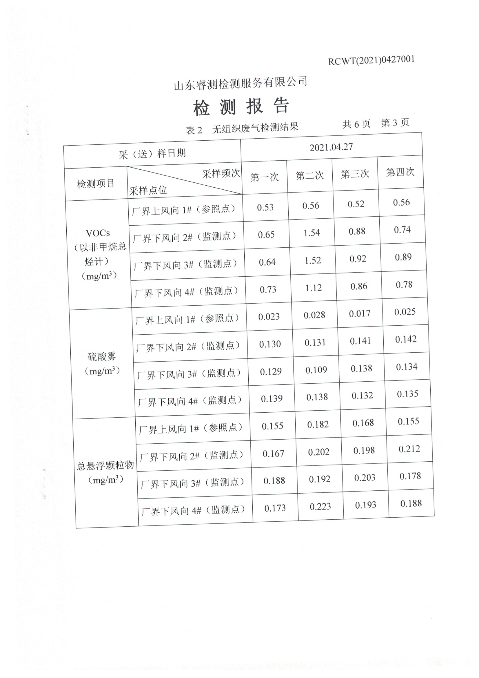 2021年4月份及季度自行檢測(cè)報(bào)告