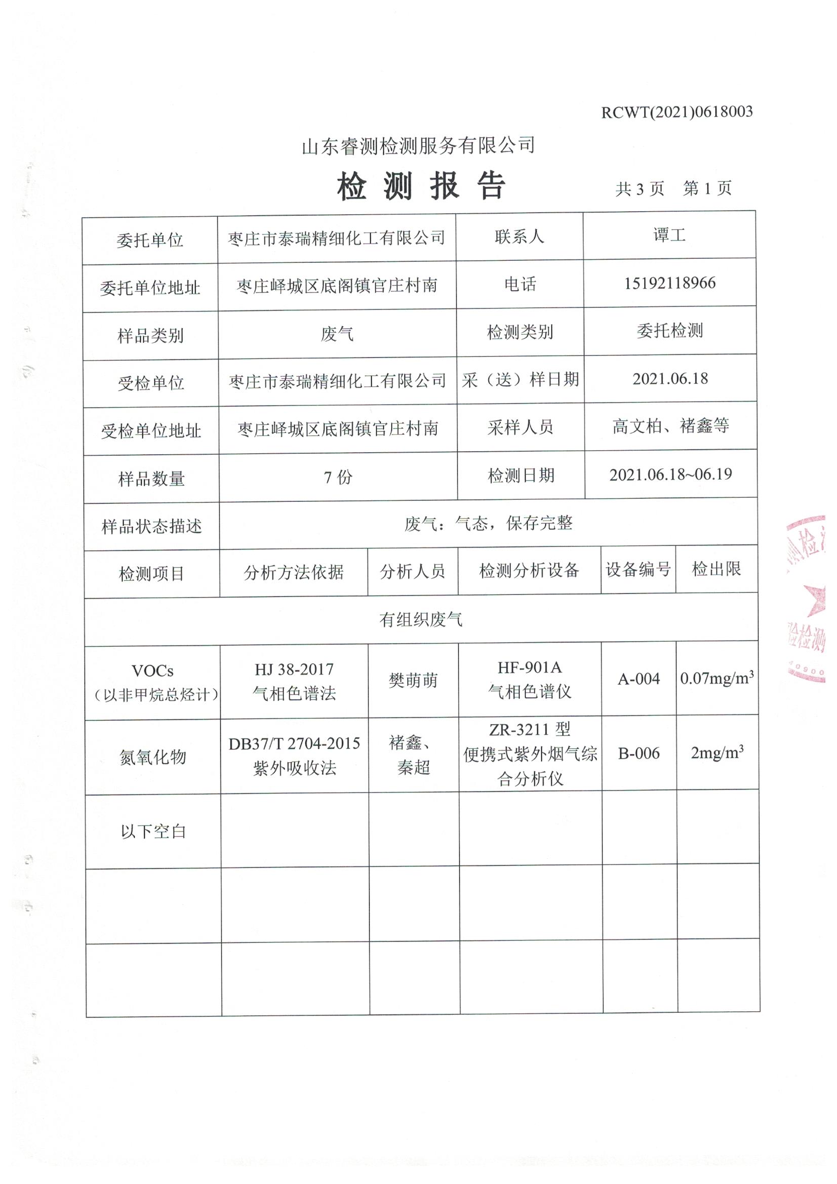 2021年6月份自行檢測(cè)報(bào)告