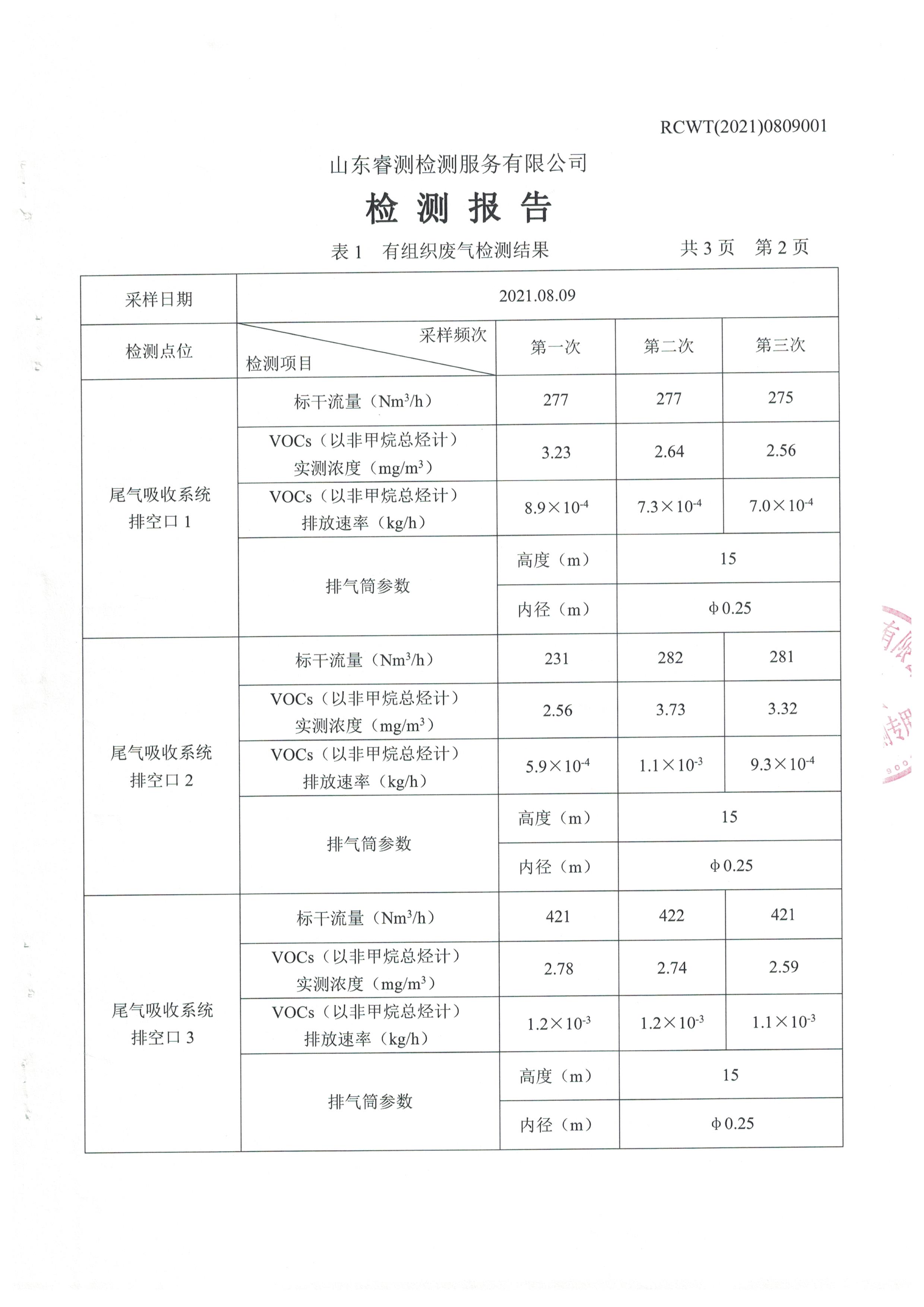 2021年8月份自行檢測報告