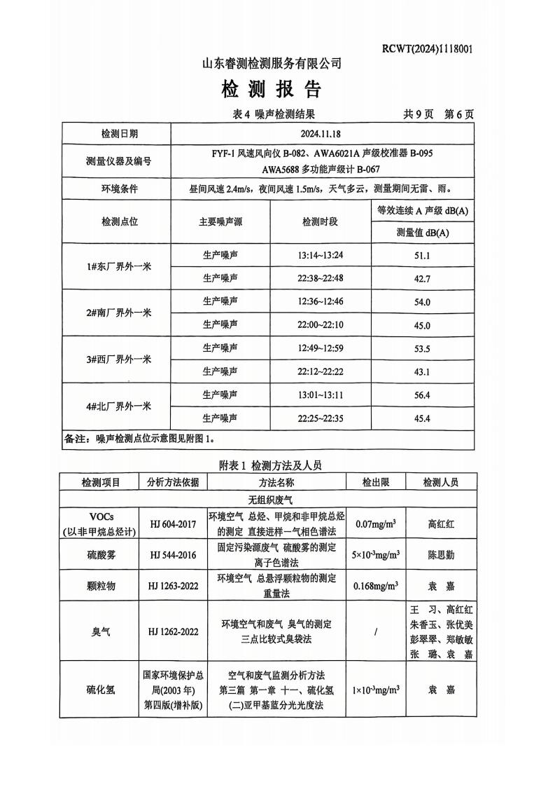第四季度廢氣、噪音檢測報告