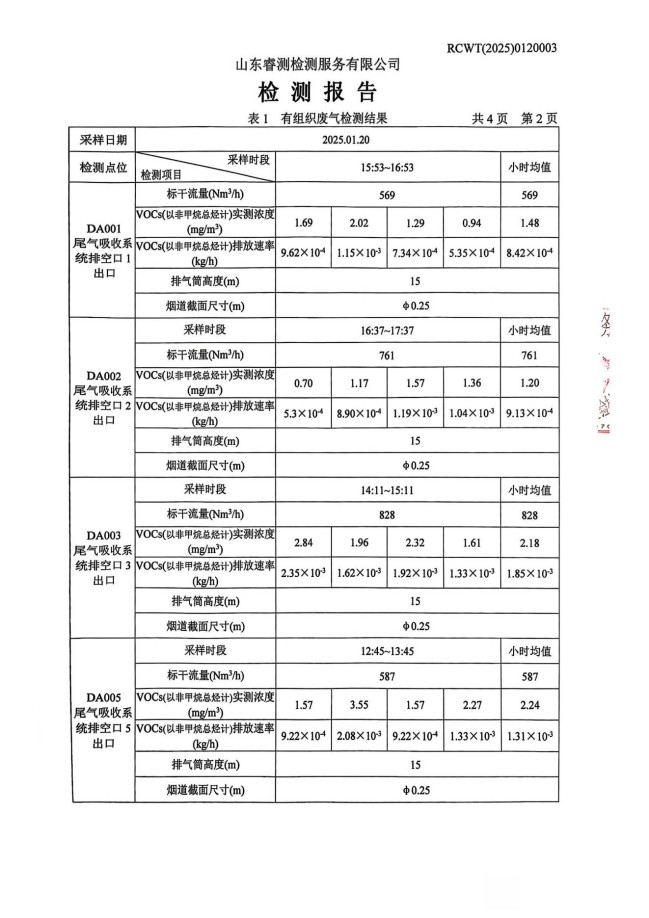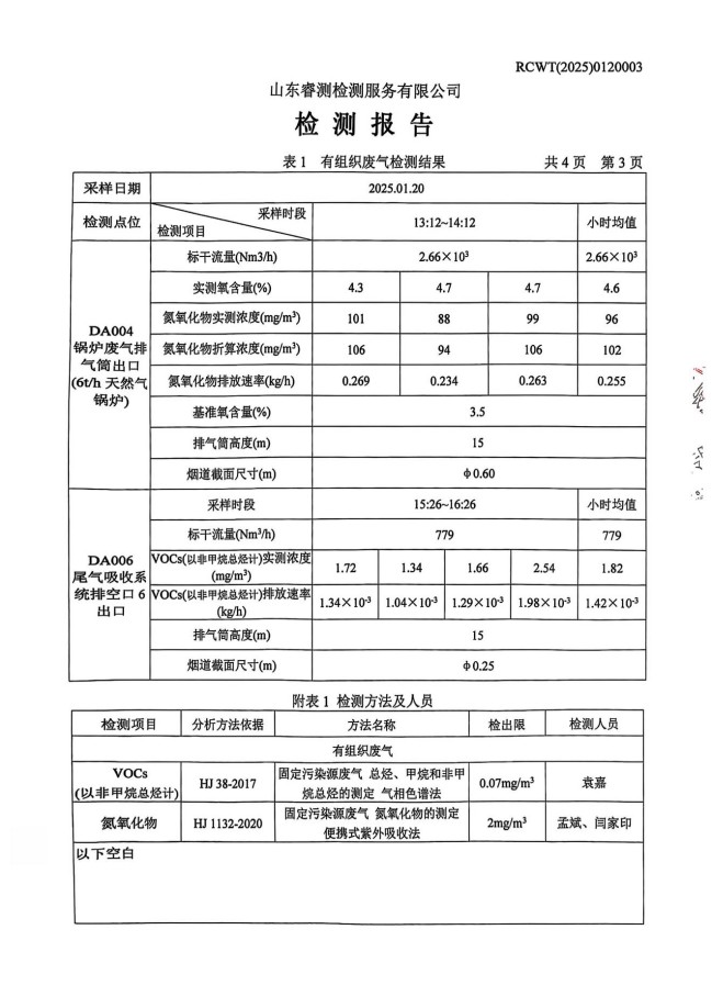 2025年1月廢氣檢測報告