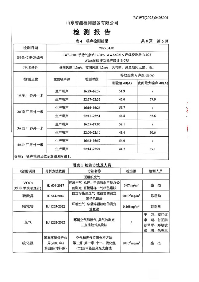 2025年4月廢氣、噪聲檢測(cè)報(bào)告