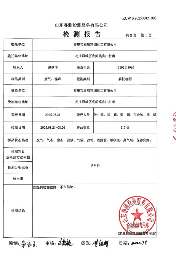 2025年泰瑞精細(xì)化工有限公司土壤檢測報(bào)告