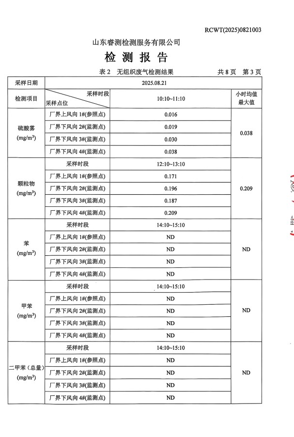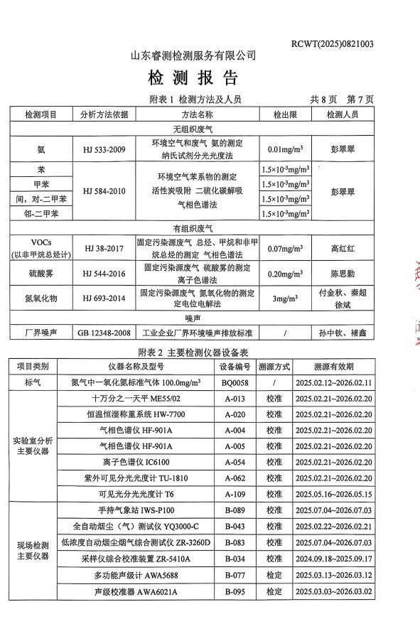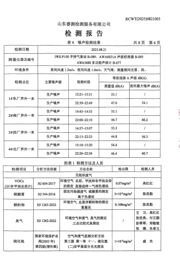2025年8月廢氣、噪聲檢測報(bào)告