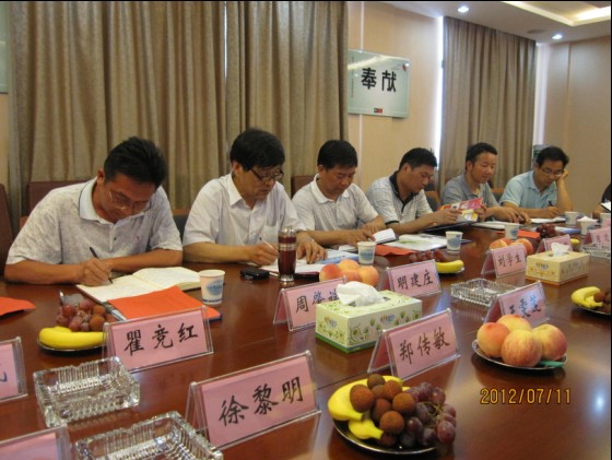 圖為十堰市物價局領(lǐng)導(dǎo)偕十堰市自來水公司董事長劉學(xué)生、東風(fēng)汽車公司水務(wù)公司總經(jīng)理周肇端與我司交流。