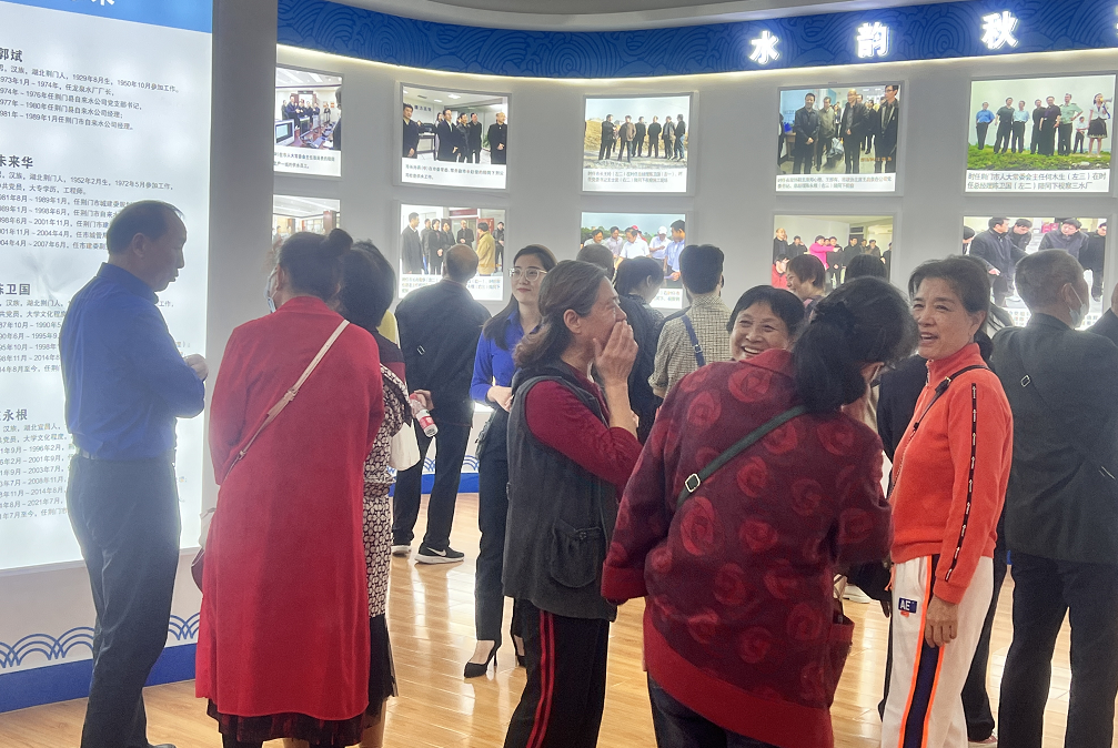 文化長廊的“飲水思源”區(qū)域記載了集團(tuán)從1969年建司以來的大事記,“水韻秋實”區(qū)域張貼了許多工作場景的老照片,“水到渠成”區(qū)域懸掛著水務(wù)人親筆書寫的字畫,還有配件展示區(qū)的一件件實物,都讓老同志們駐足攀談,夢回當(dāng)年。