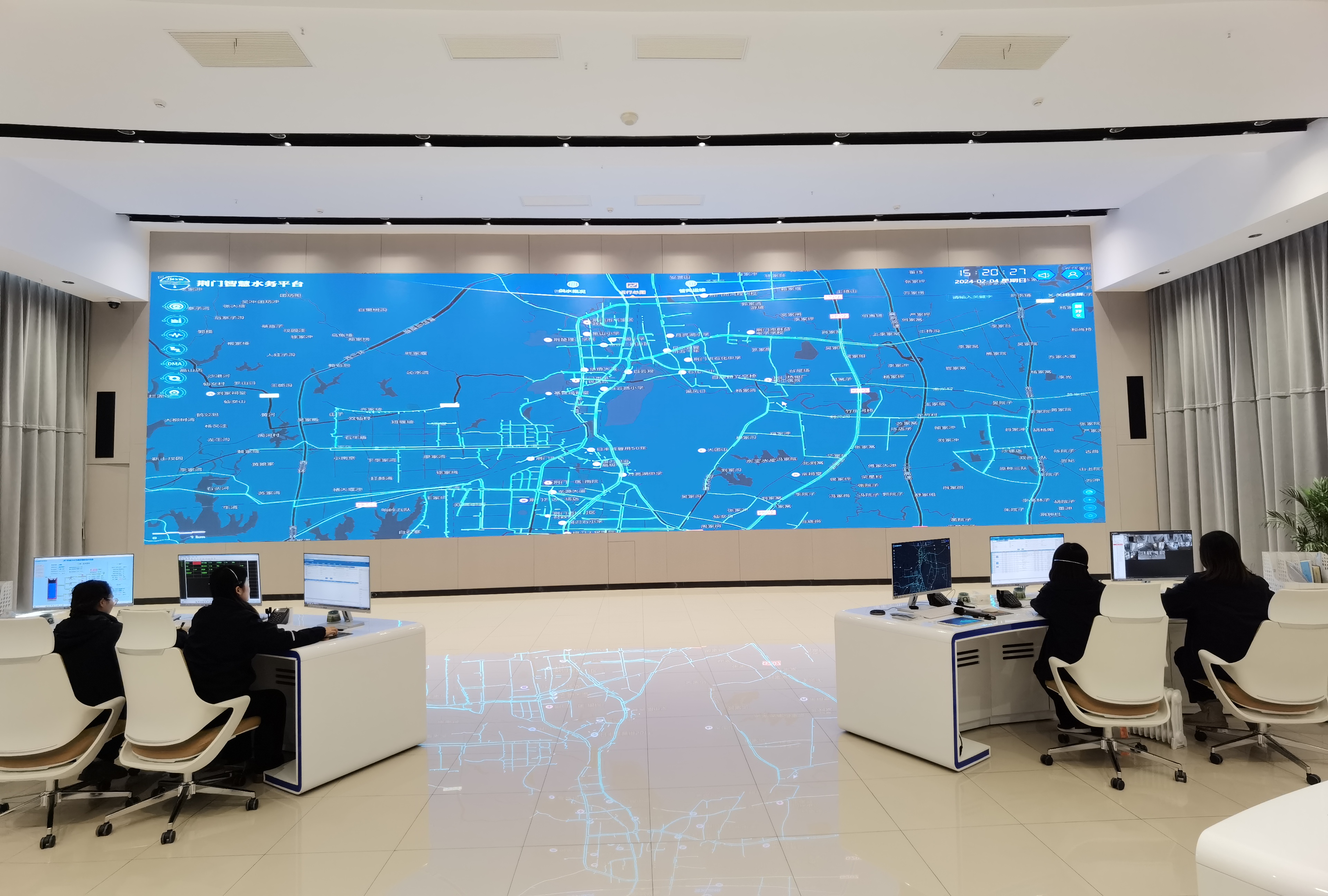 圖為市水務(wù)集團(tuán)調(diào)度指揮中心現(xiàn)場