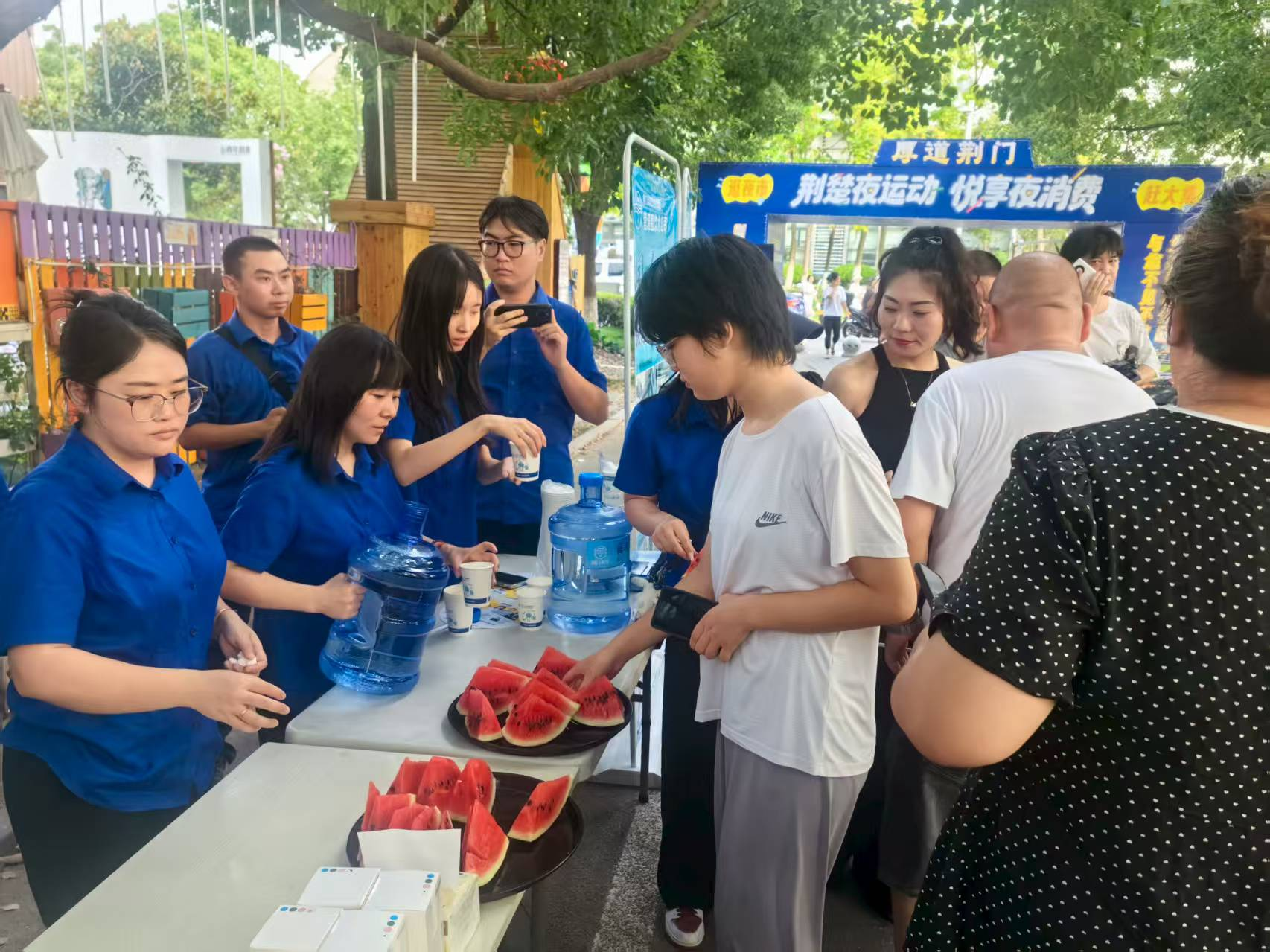 7月29日晚,市水務(wù)集團(tuán)慧泉房產(chǎn)公司攜手龍泉直飲水公司,帶著清涼好禮,結(jié)伴奔赴生態(tài)運動公園“逛夜市,趕大集”。