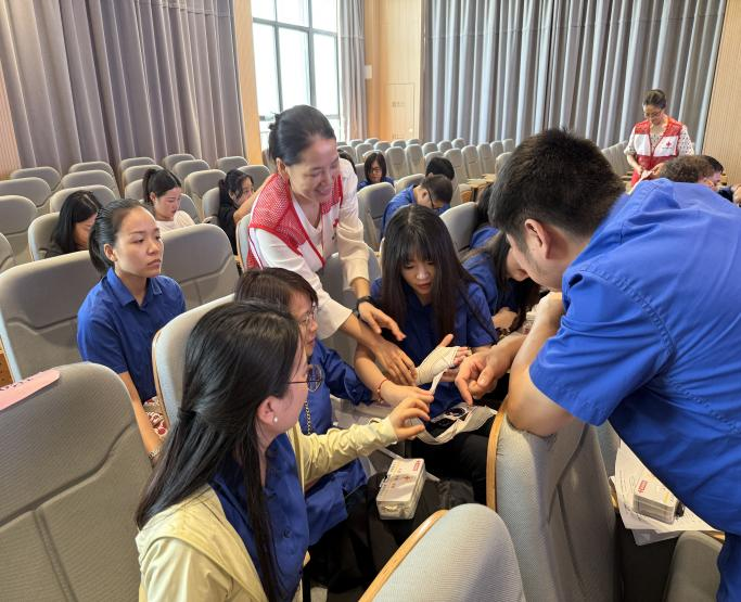 本次培訓(xùn)內(nèi)容豐富實(shí)用,既涵蓋國際紅十字運(yùn)動基本知識、救護(hù)新概論等理論內(nèi)容,又聚焦現(xiàn)代救護(hù)技術(shù)開展實(shí)操訓(xùn)練。培訓(xùn)中,講師系統(tǒng)講解心肺復(fù)蘇與AED操作技能,通過現(xiàn)場演示、手把手指導(dǎo),幫助參訓(xùn)人員熟練掌握這一關(guān)鍵生命救護(hù)技術(shù);在創(chuàng)傷救護(hù)環(huán)節(jié),不僅細(xì)致講解止血、包扎、骨折固定等基礎(chǔ)方法,還針對氣道異物梗阻、燒燙傷、踝關(guān)節(jié)扭傷等常見意外傷害的現(xiàn)場處理展開深入教學(xué)。